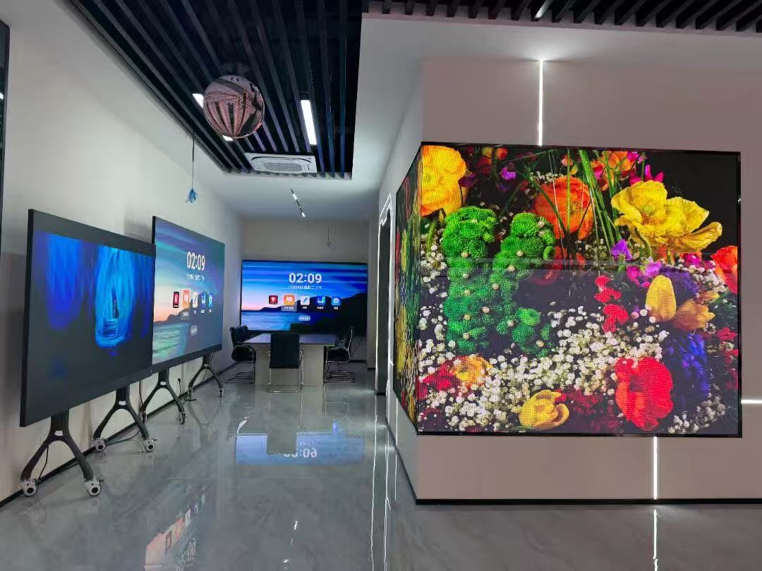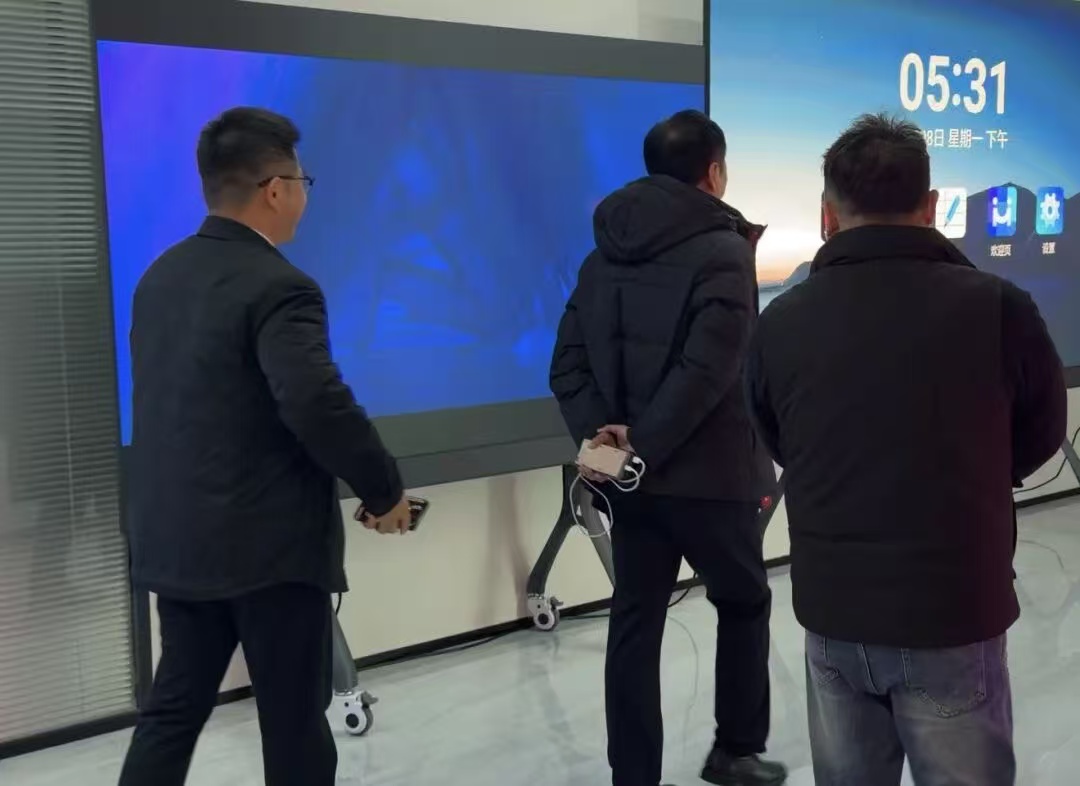 在章總的引導下,洪秘書長與張強顧問一行參觀了亮彩電子智能化展廳。展廳內集中展示了柔性屏、貼膜屏、全息屏、變色龍、LED一體機等前沿技術產品,以及智慧會議、智慧教育、無紙化辦公等場景化解決方案。