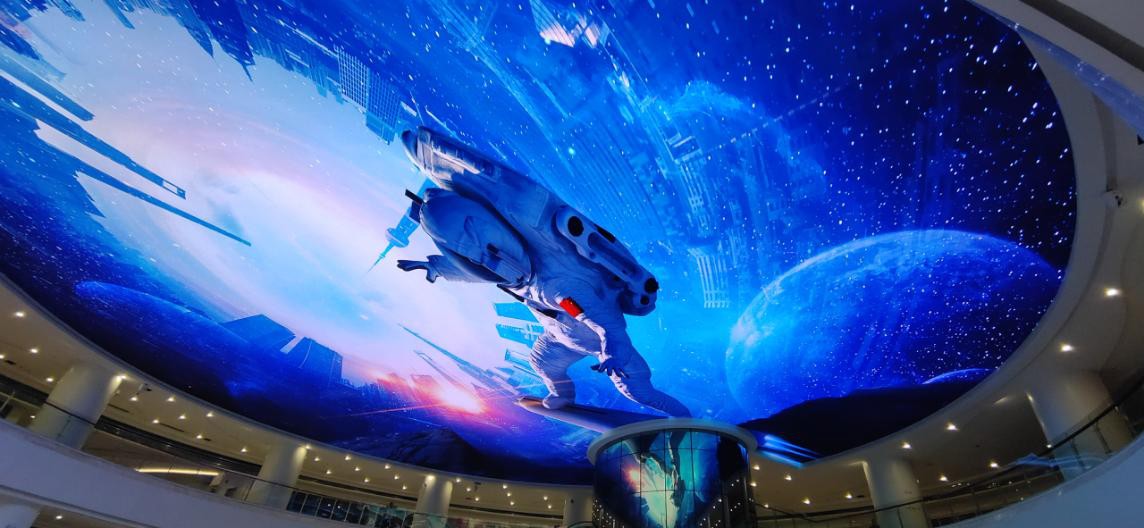 地下沉浸商業街被800多平方的LED天幕完整覆蓋,高清亮麗的顯示效果給當地人群帶來了震撼感受,夜幕降臨,氣勢恢宏,炫彩繽紛的天幕畫面,讓購物之旅、聚友約會更加浪漫、夢幻。待該商場開業后,有望形成常州一個網紅打卡地,真正做到了“一屏引動半坐城”的效果。